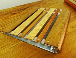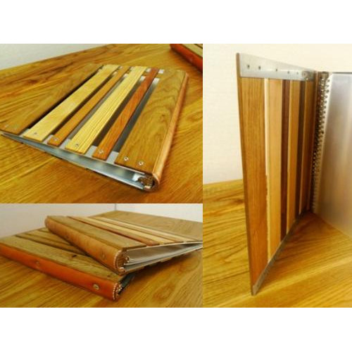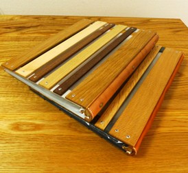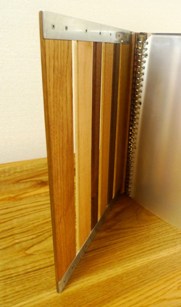 木材のサンプルを兼ねたバインダーで、木と木をアルミ・鉄でジョイントして、