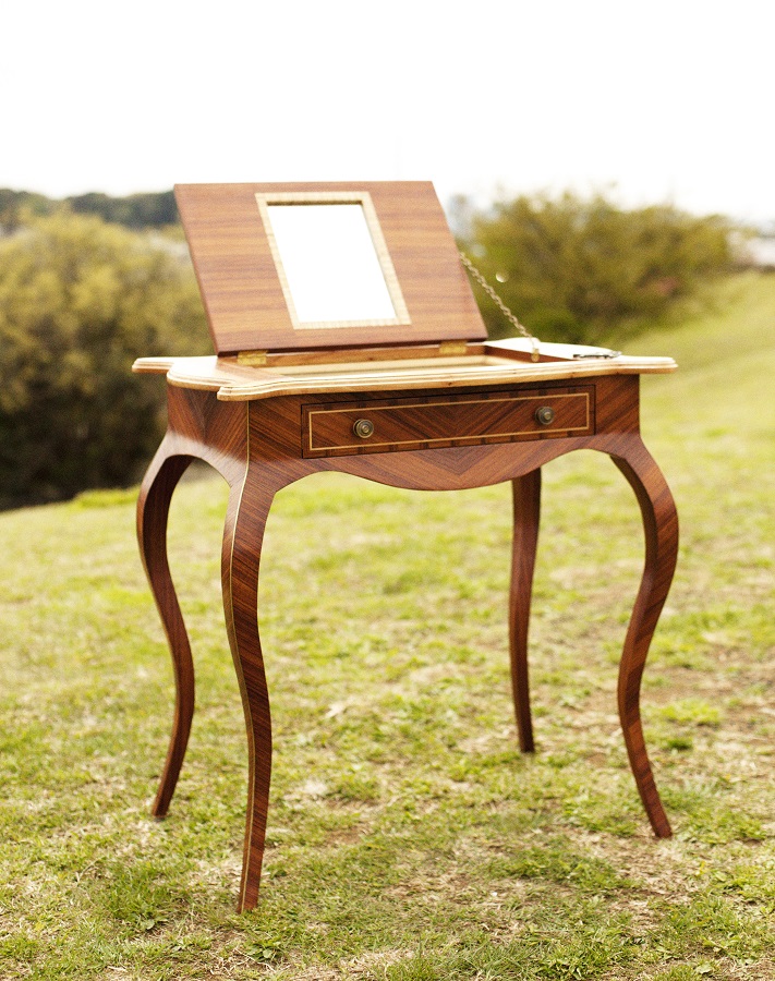 テーブルの表面と猫足先端のラインには、オーナメントとして真鍮を添わせてあります。