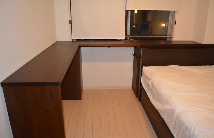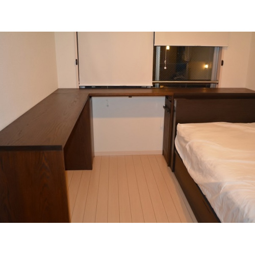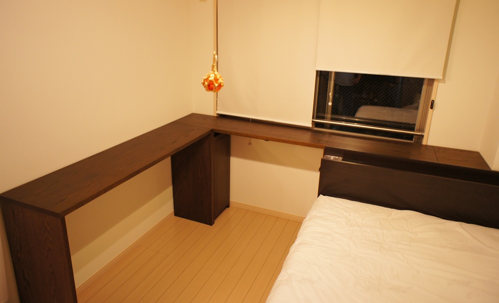 「ベッドと壁の間のデッドスペースを上手く使える収納が欲しい」とのお話を頂き制作させて頂きました。
