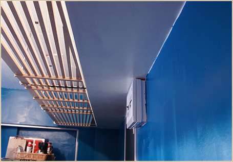 天井とお部屋の形に合わせて設置しています。