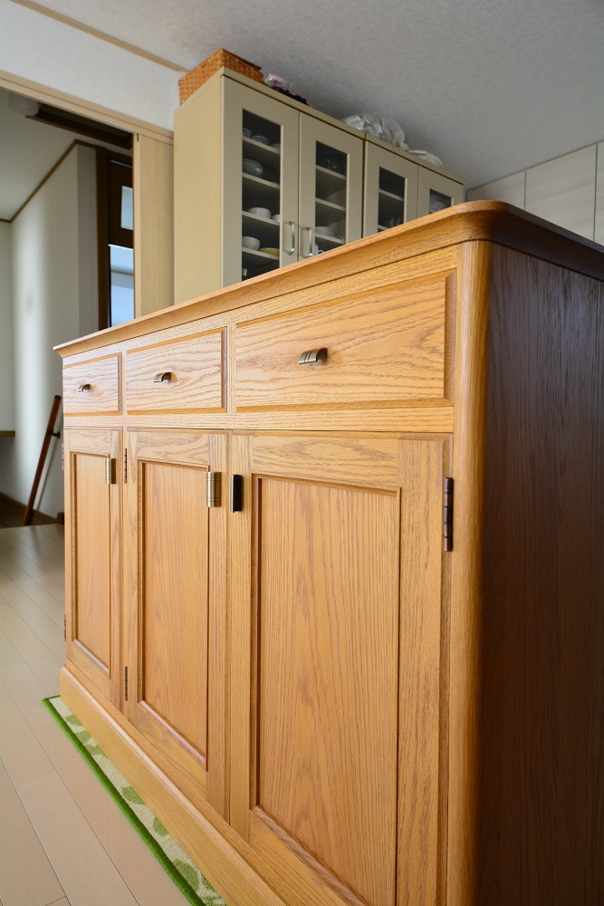 リビングとキッチンの間仕切りとして、 両側から使うことのできる