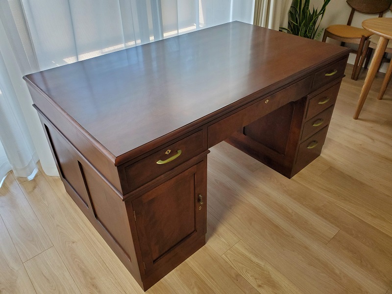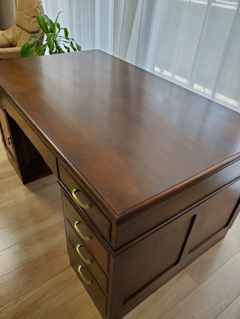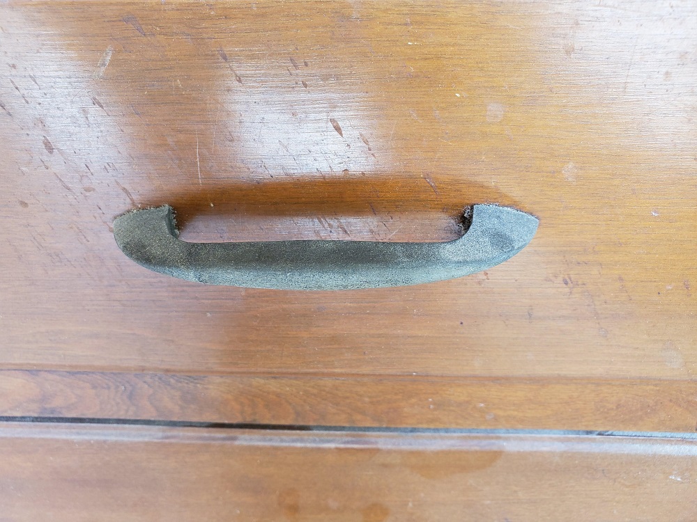 シミや傷、取っ手の錆などだいぶ荒れていましたが一度塗装をはがし研磨することでここまでの仕上がりになります。
