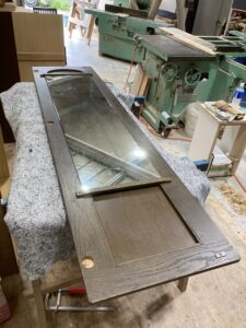 扉の部材をカット、ジョイントして座面に使用しました。