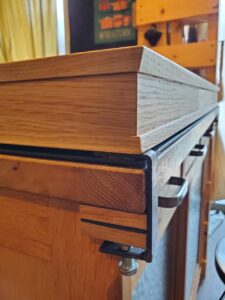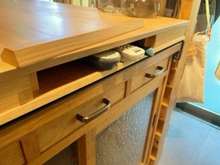 お持ちのサイドボードに合わせた設計となっており、側面にはリモコンなどちょっとした物をスッキリと収められる収納スペースがあります。