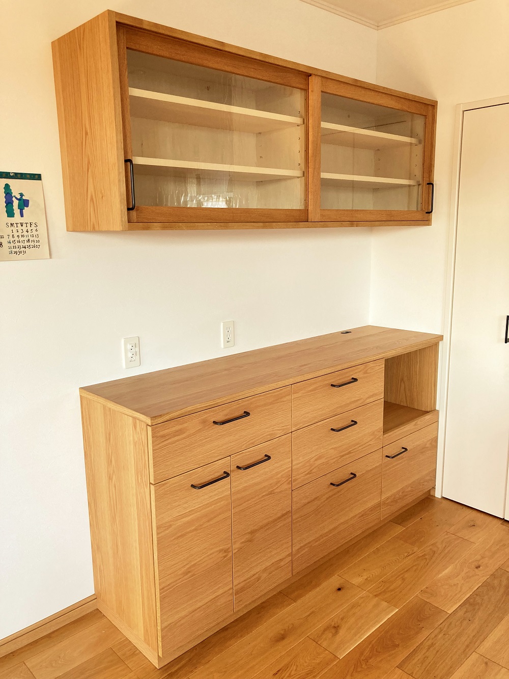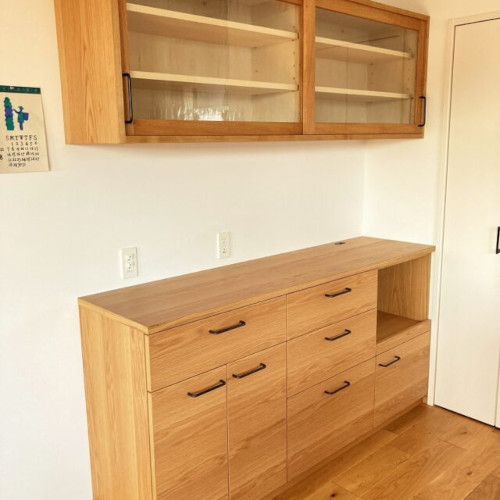 ナラ材による食器棚を製作致しました。