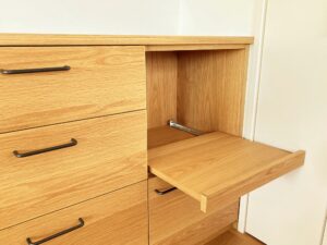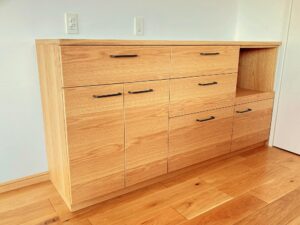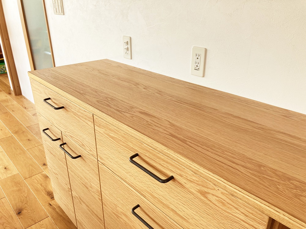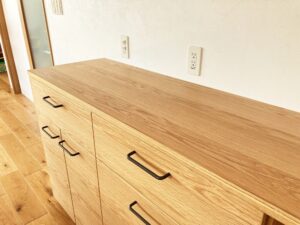 ナラ材の優しい雰囲気を感じられる家具となりました。