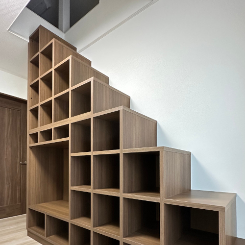 オーダーメイドならではの設計により、住まいの使いやすさとデザイン性を両立した収納階段となりました。