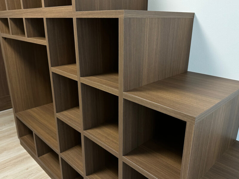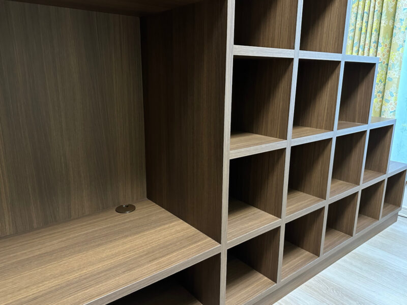 材料には、部屋の建具と同じウォールナット柄の化粧合板を使用しています。