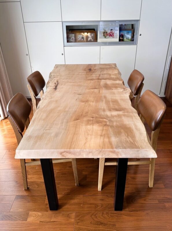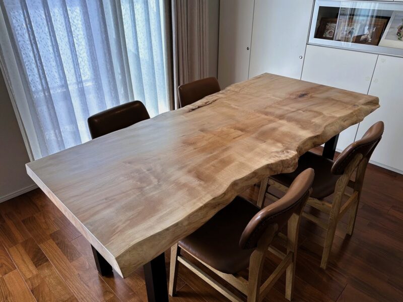 無垢のトチノキ一枚板ダイニングテーブルのオーダーメイドについてご紹介いたします。